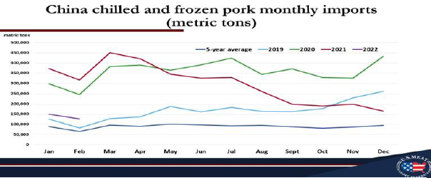 在供应方面,贸易商仍持有大量的冷冻进口猪肉库存,但由于加强的CoVID检测和消毒要求,以及进口肉类和所有冷链产品的分销和销售方式的限制,分销已经有所放缓。