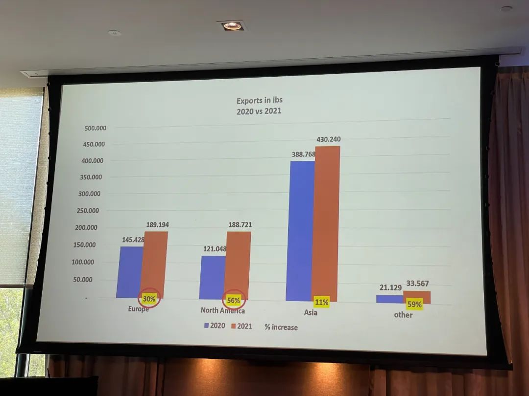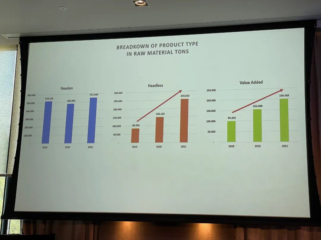 疫情前后厄瓜多尔产量不断提升,欧洲和美国进口了更多厄瓜多尔去头和增值虾产品,2021年对北美的出口增长了56%,欧洲增长了30%,厄企增加了附加值产品线的投资。