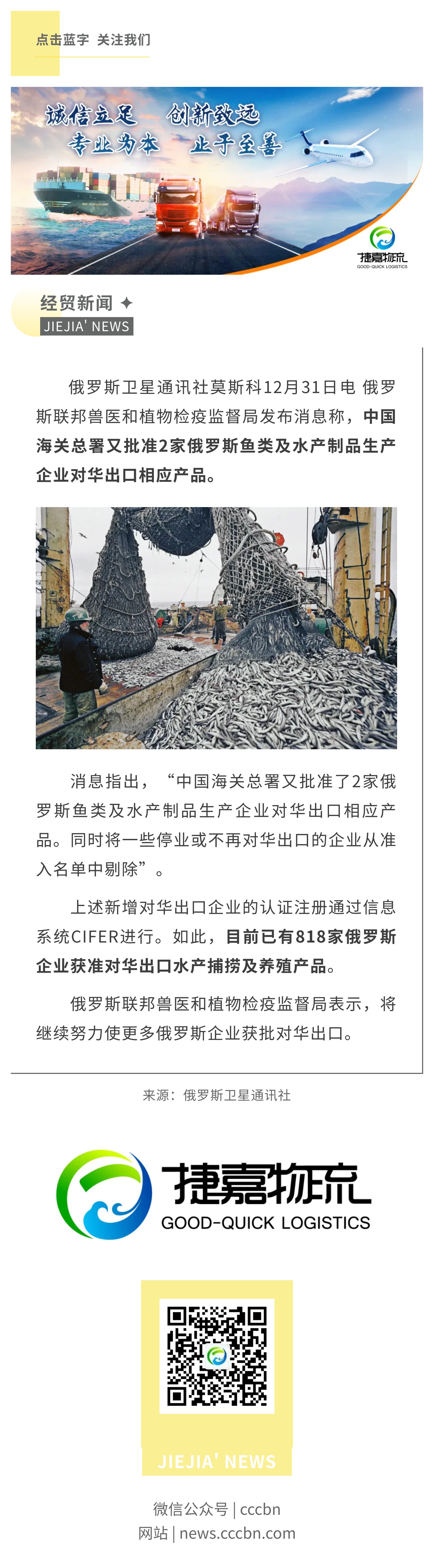 境外涉农 | 中国又批准2家俄水产品生产企业对华出口