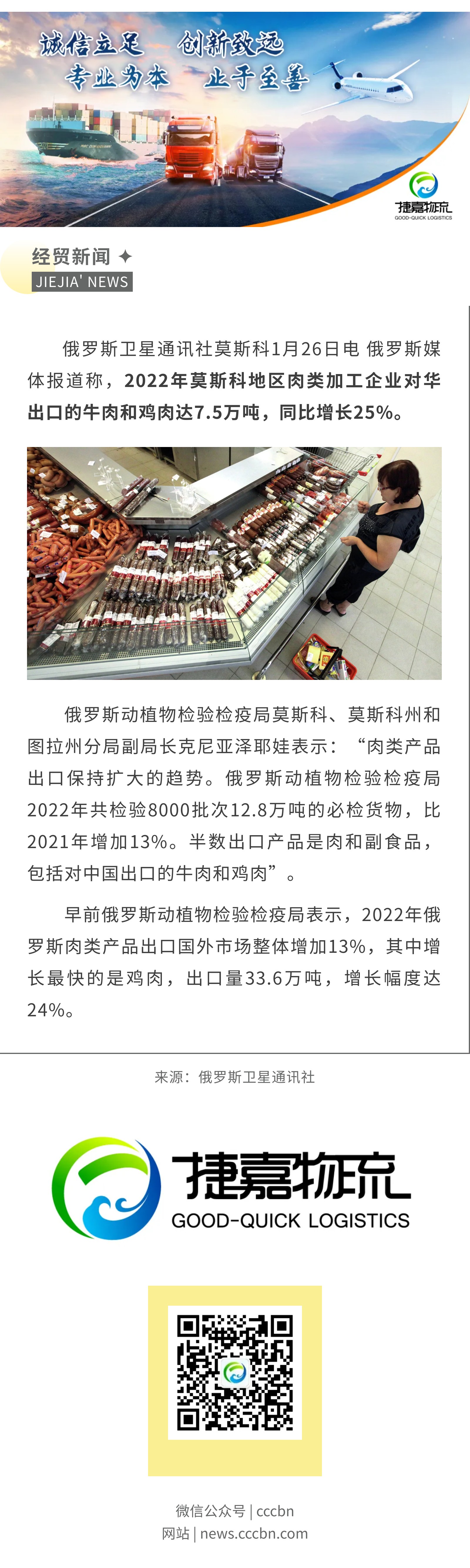 境外涉农 | 2022年莫斯科地区对华出口肉类产品增长25%