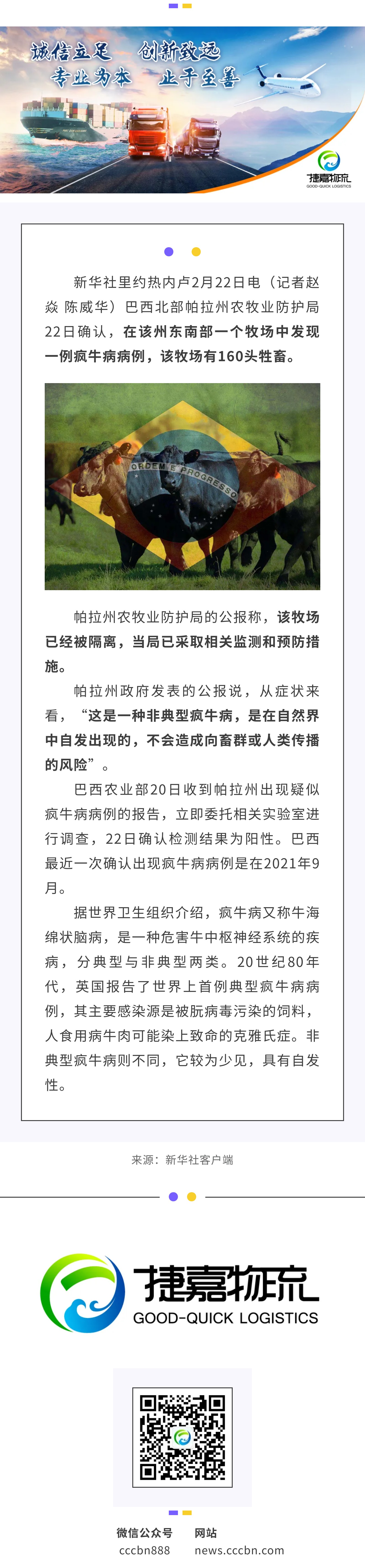 境外涉农 | 巴西一牧场确认出现疯牛病病例