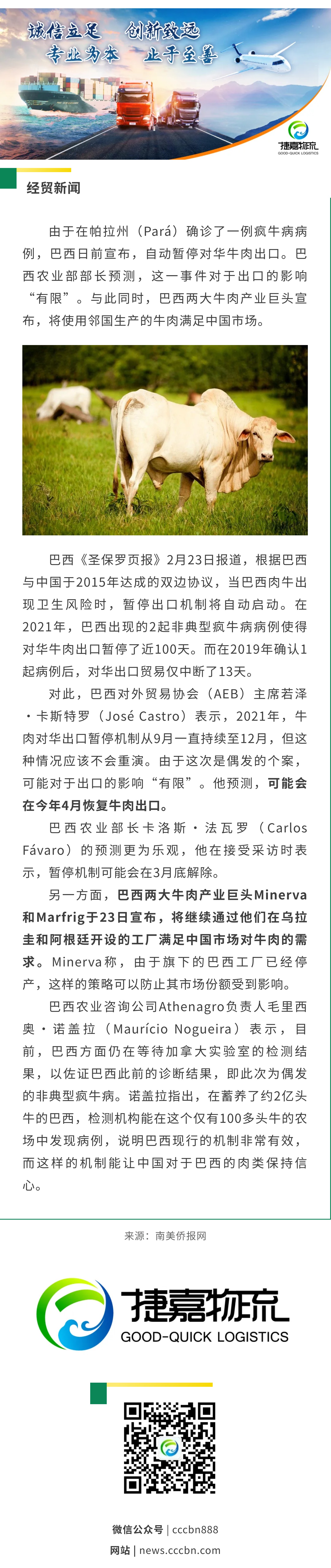 境外涉农 | 对华牛肉出口暂停,巴西政府及企业保持乐观、积极应对