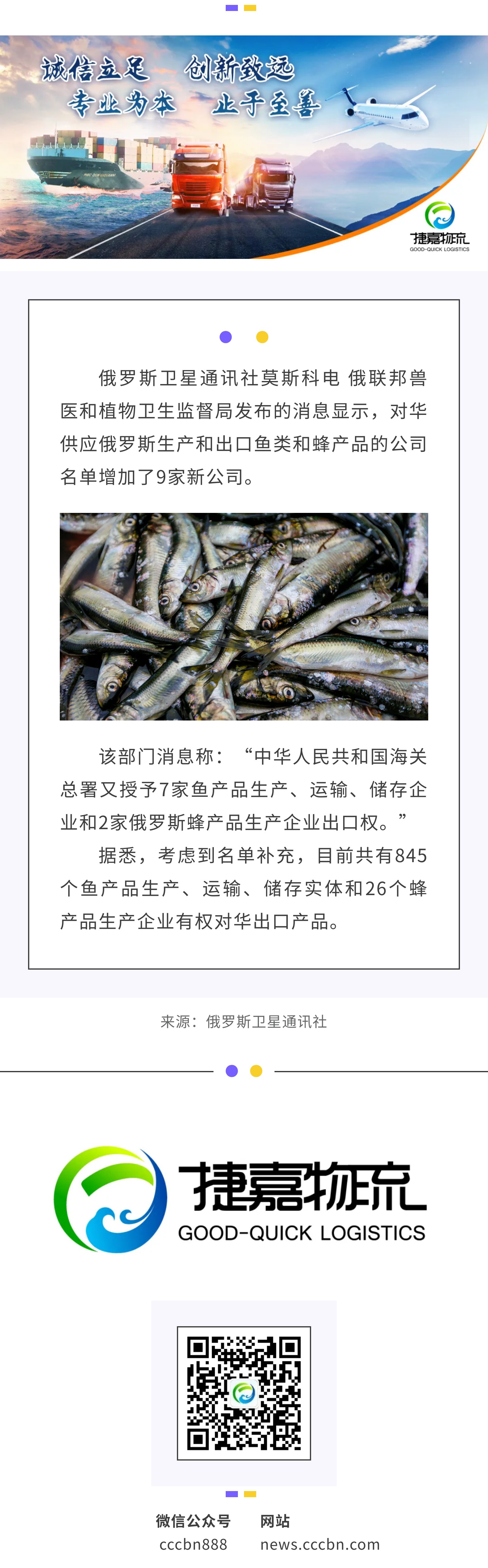 境外涉农 | 俄兽医和植物卫生监督局:中国又批准9家俄罗斯公司供应鱼类和蜂类产品