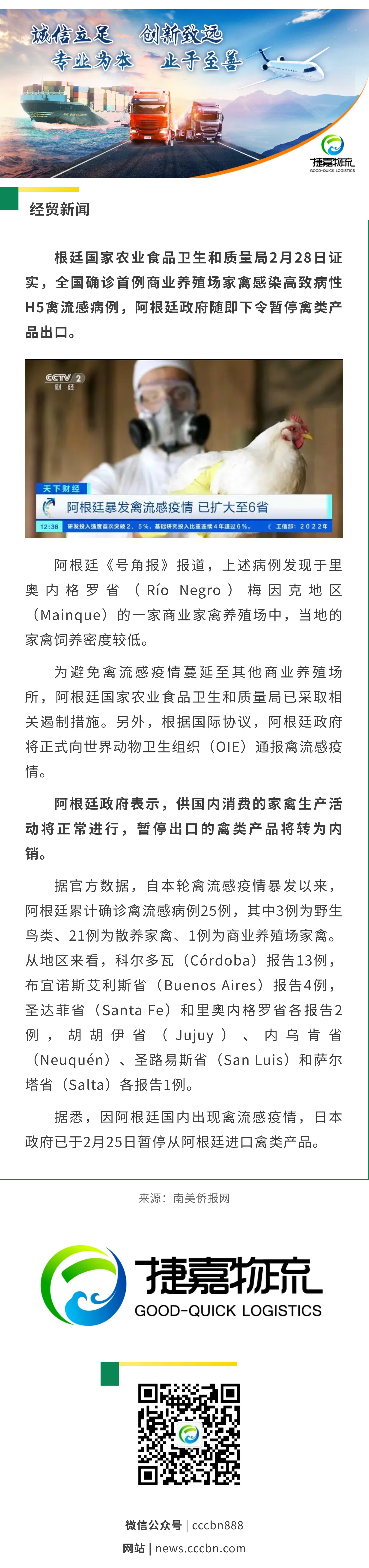 境外涉农 | 阿根廷确诊首例商业养殖场禽流感病例,已暂停禽类产品出口