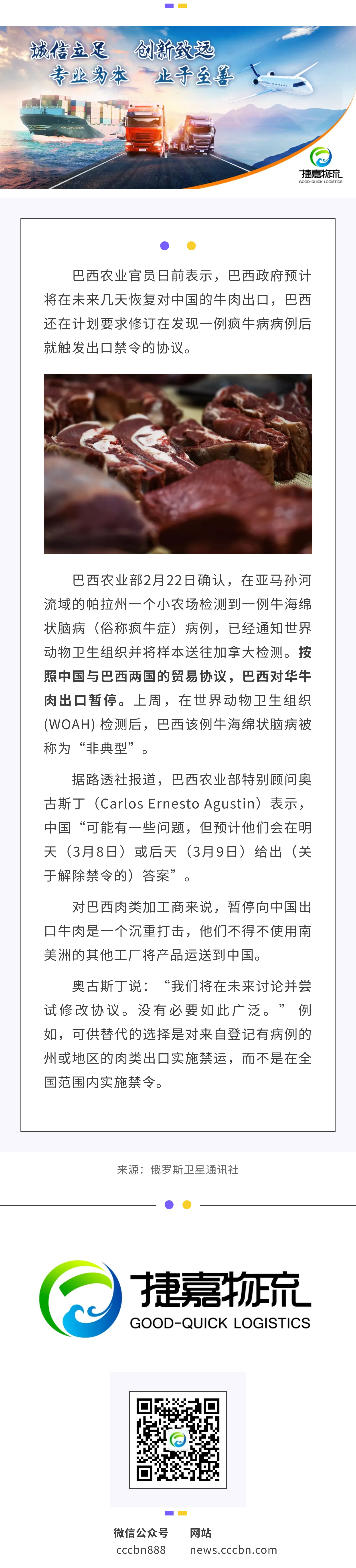境外涉农 | 巴西希望中国修改疯牛病的卫生协议