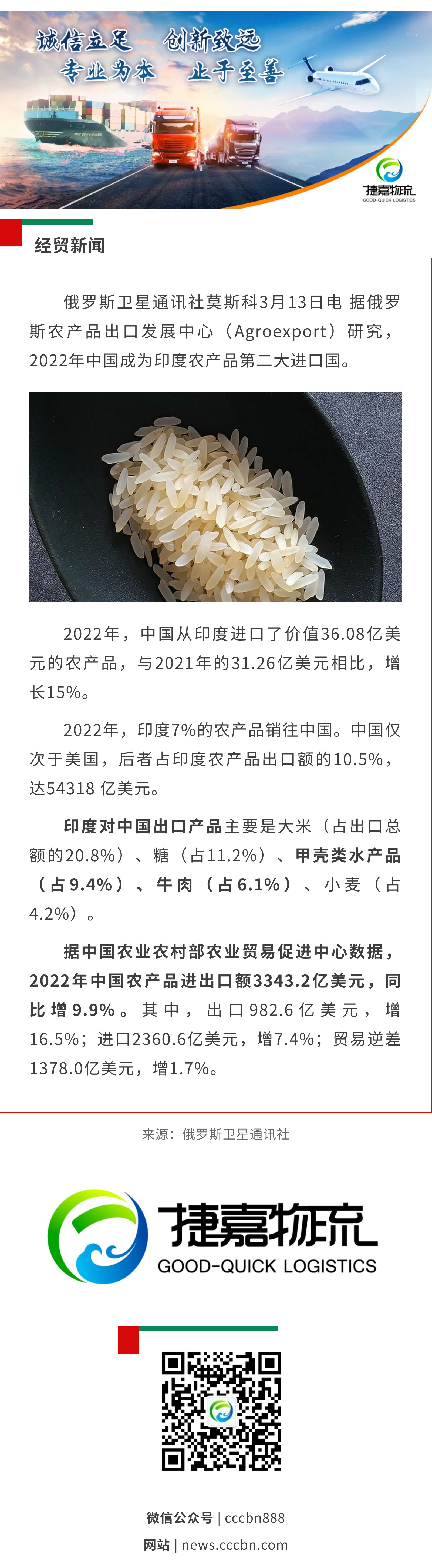 境外涉农 | 研究:中国成为印度农产品第二大进口国