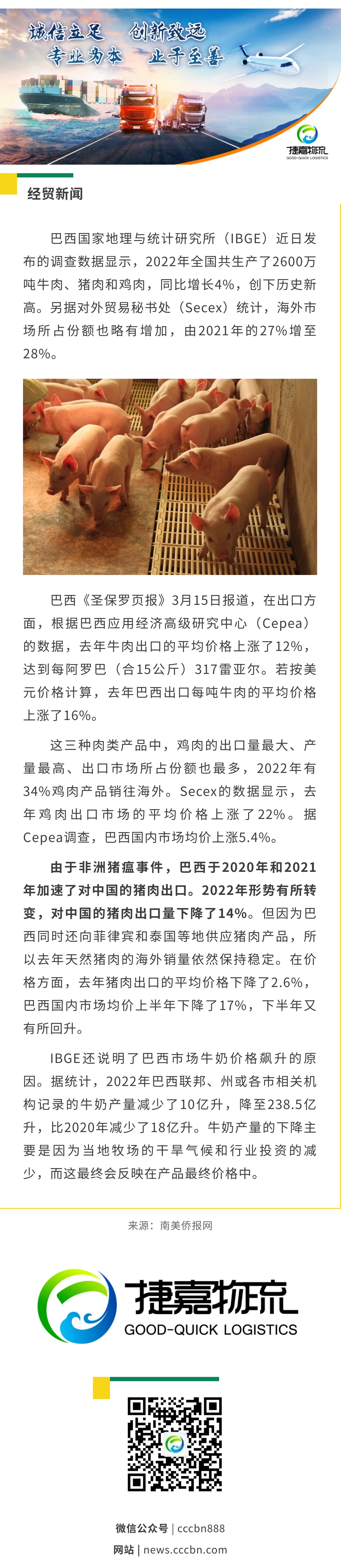 境外涉农 | 巴西去年肉类产量创新高,海外市场占比增加