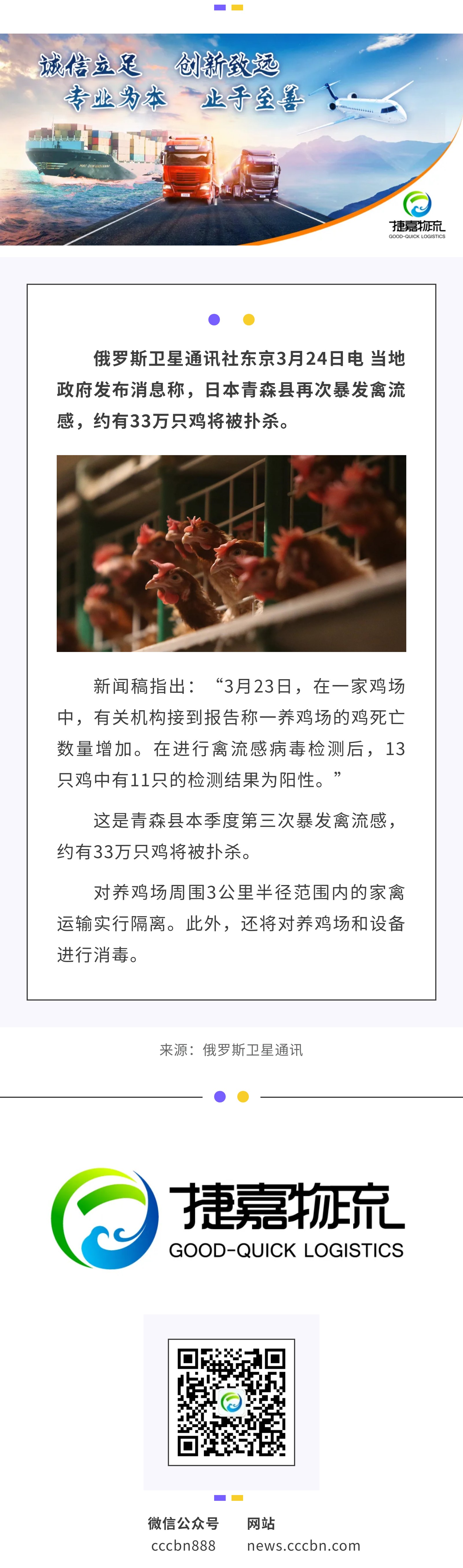 境外涉农 | 日本青森县因再次暴发禽流感将扑杀近33万只鸡