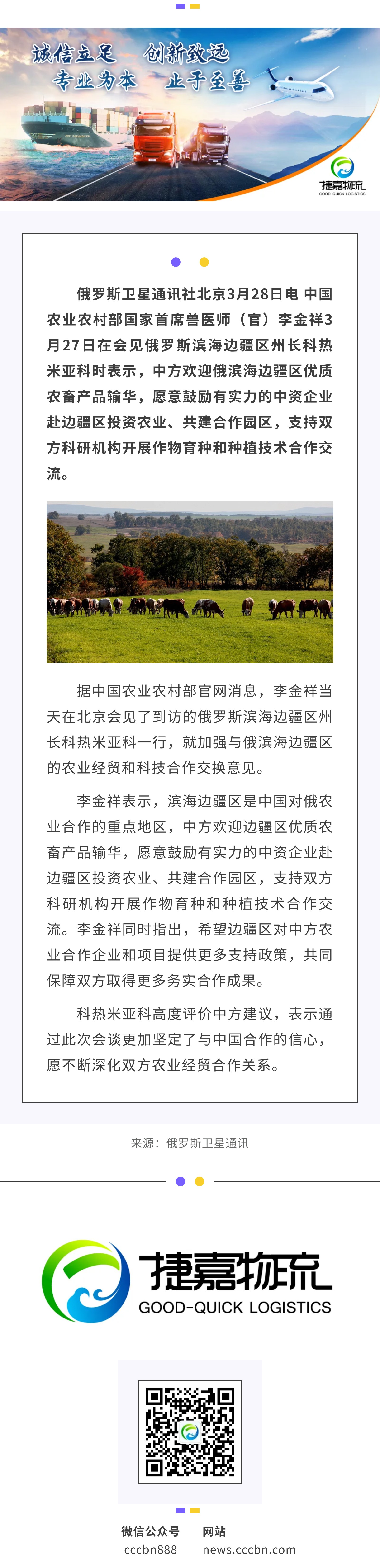 境外涉农 | 中国农业农村部:中方欢迎俄滨海边疆区优质农畜产品输华并鼓励双方开展农业合作