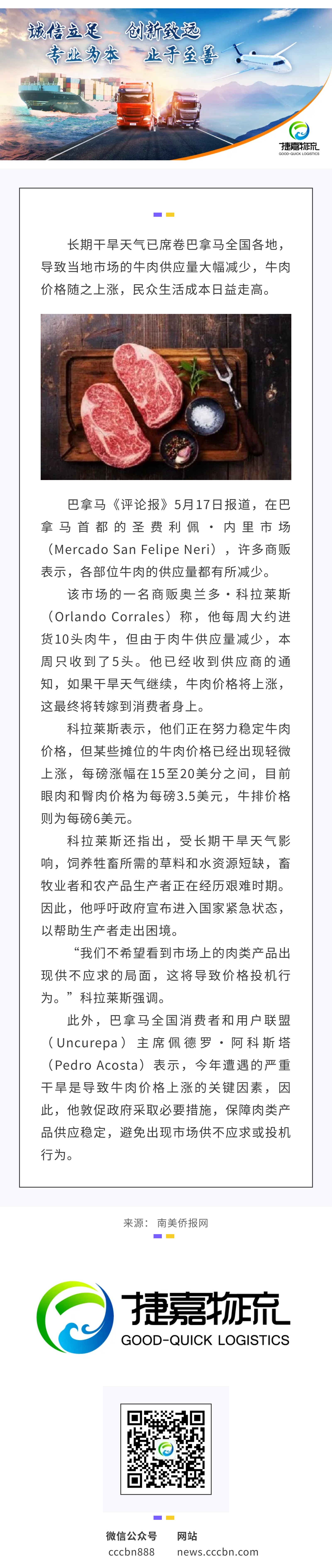 境外涉农 | 干旱天气席卷全国,巴拿马牛肉价格上涨