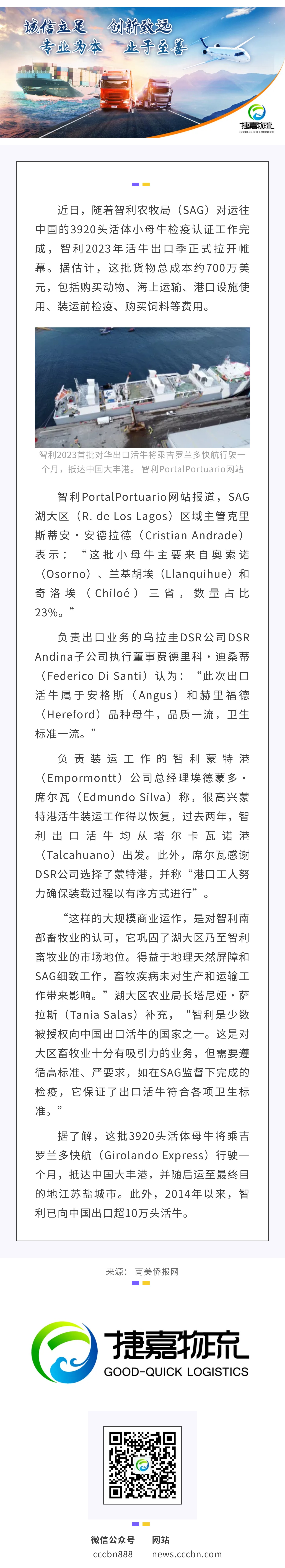 境外涉农 | 智利2023首批对华出口活牛完成检疫装运