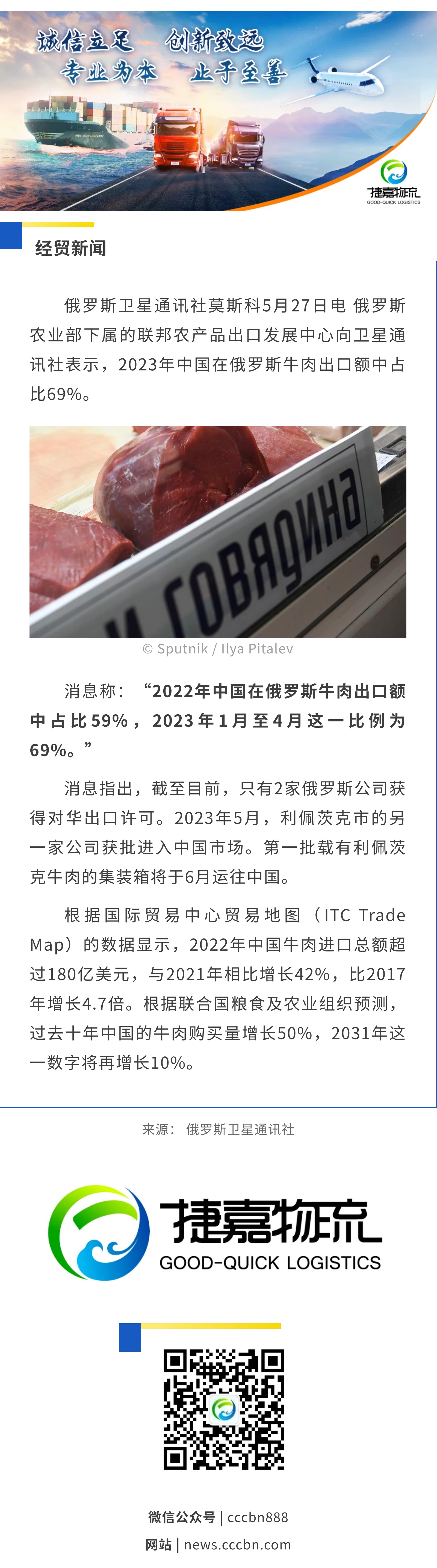 境外涉农 | 俄动植物检验检疫局:2023年中国成为俄罗斯禽肉、牛肉主要进口国