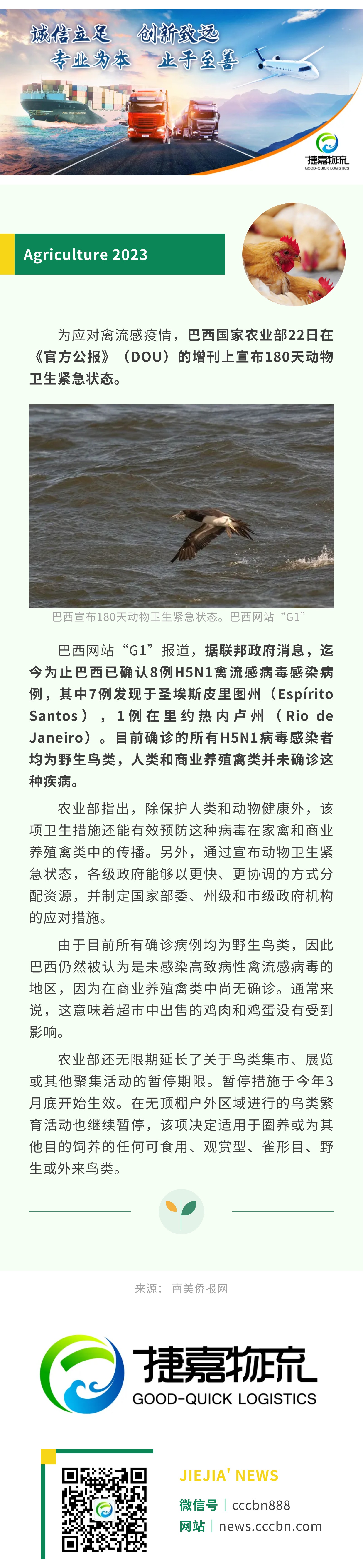 境外涉农 | 为应对禽流感,巴西宣布180天动物卫生紧急状态