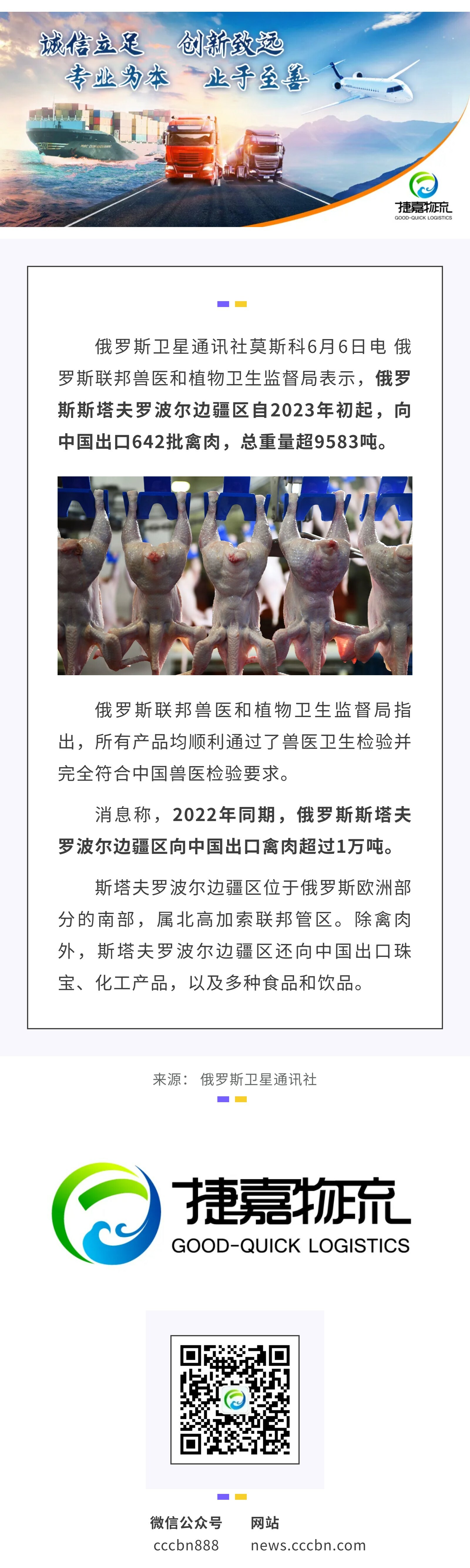 境外涉农 | 俄斯塔夫罗波尔边疆区自2023年初起对华出口9500余吨禽肉