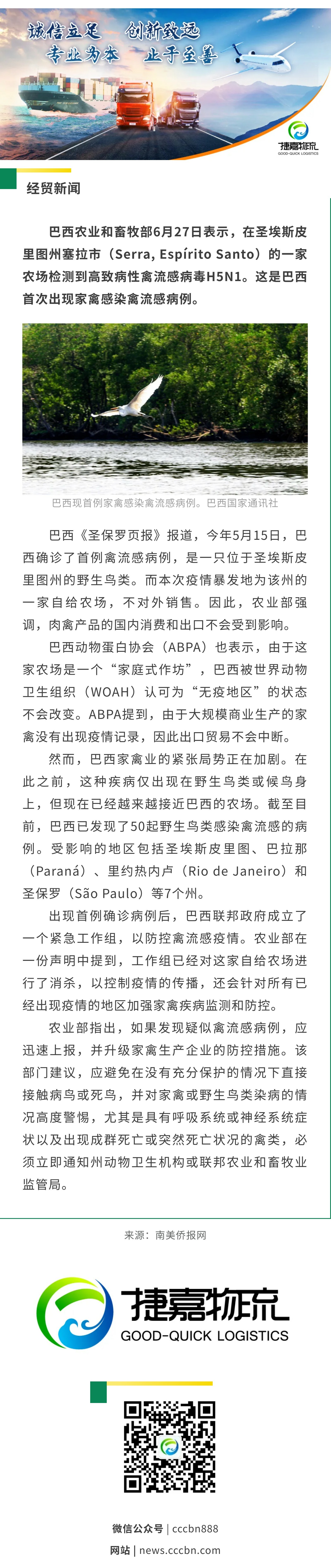 境外涉农 | 巴西现首例家禽感染禽流感病例,暂不影响肉禽出口