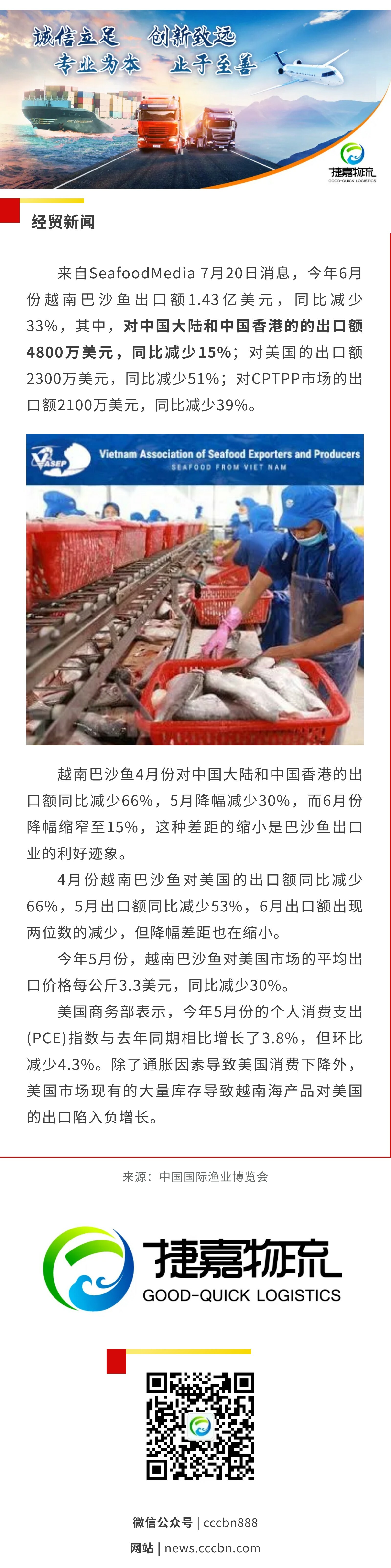 境外涉农 | 今年6月份越南巴沙鱼出口额同比减少33%