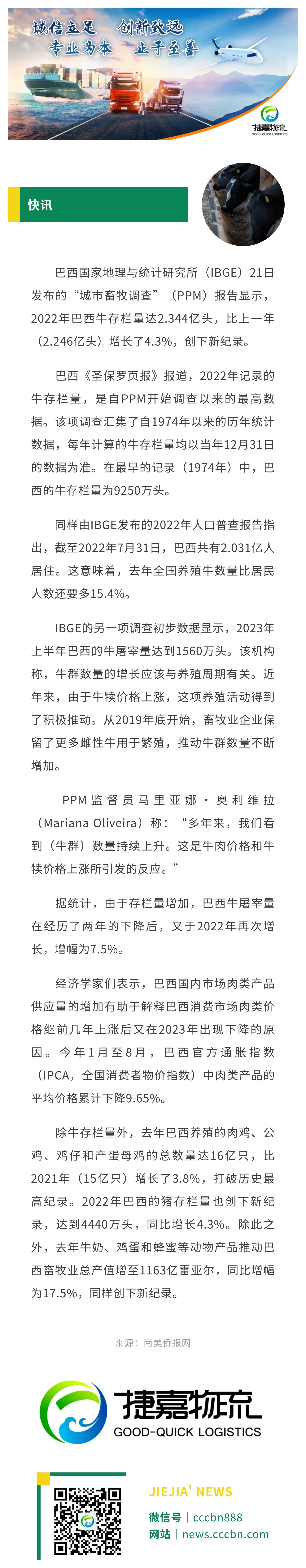 境外涉农 | 巴西去年牛存栏量创新高,比总人口多15%