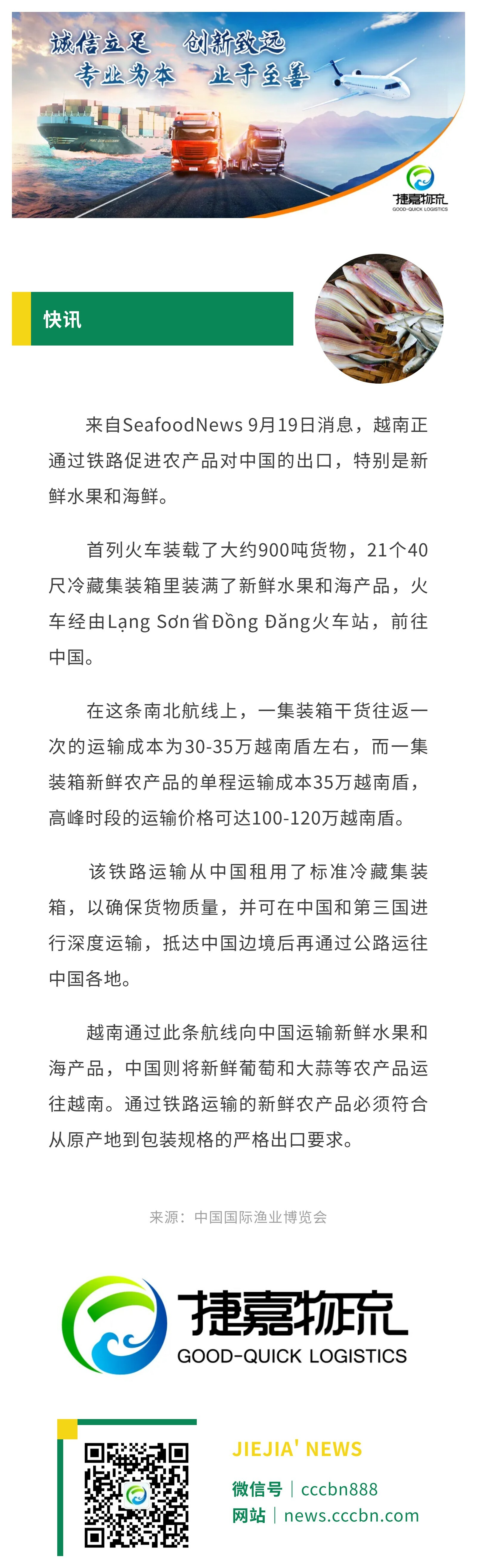 境外涉农 | 越南通过铁路向中国出口新鲜海产品