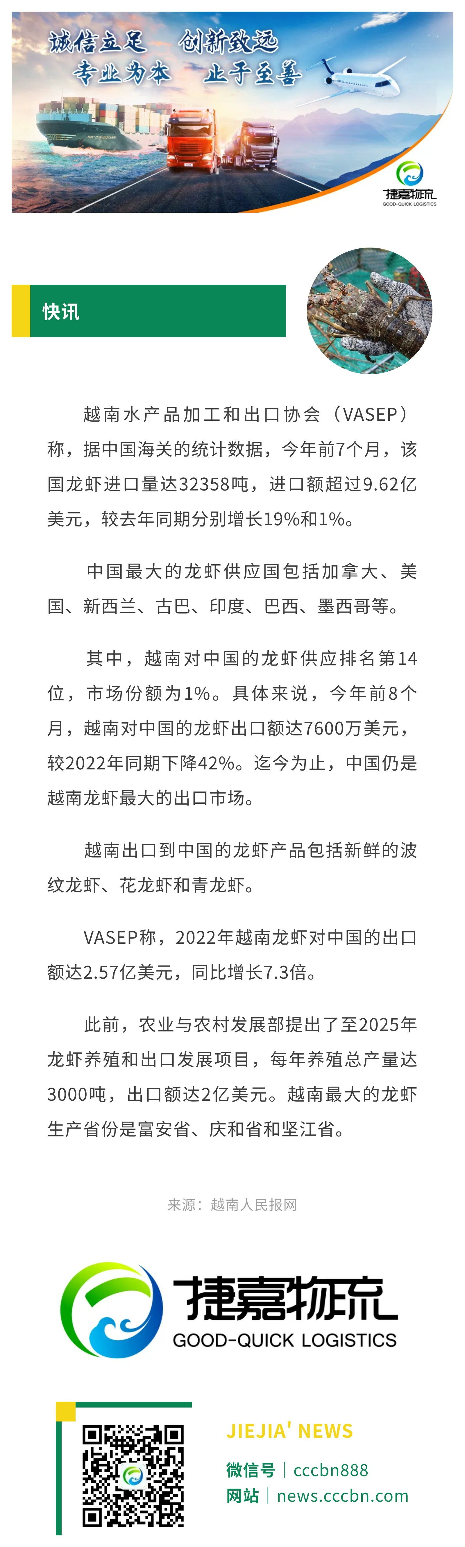 境外涉农 | 中国是越南龙虾最大的出口市场