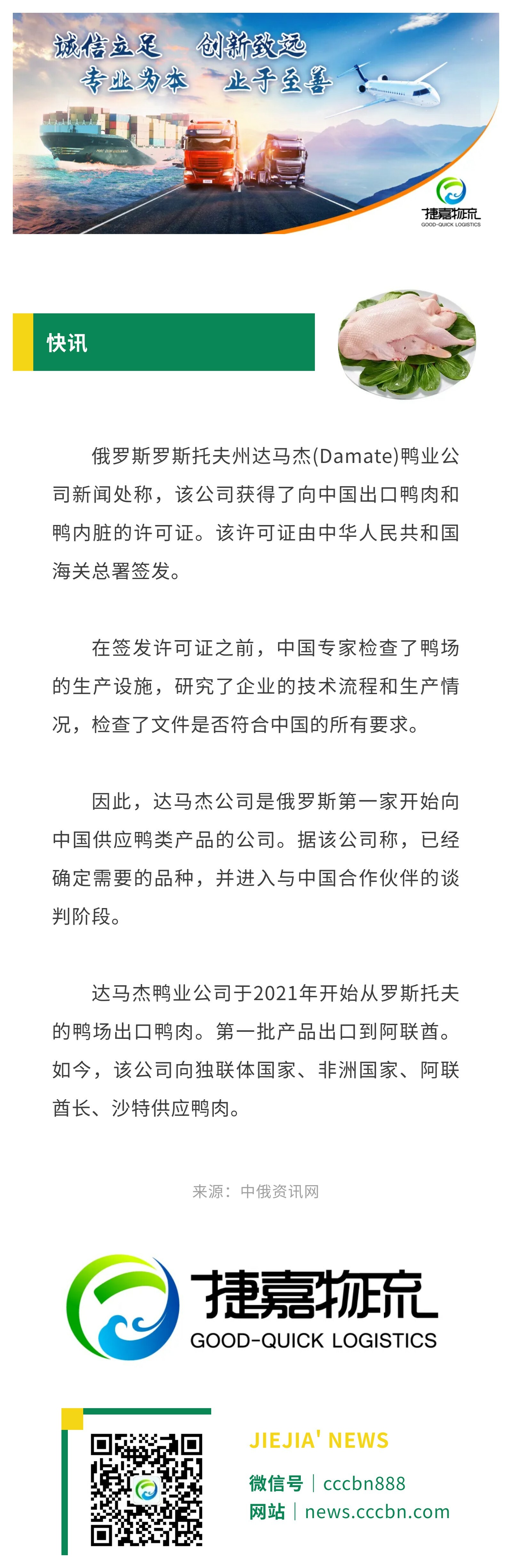 境外涉农 | 俄罗斯公司首次获得向中国出口鸭肉和鸭内脏许可证