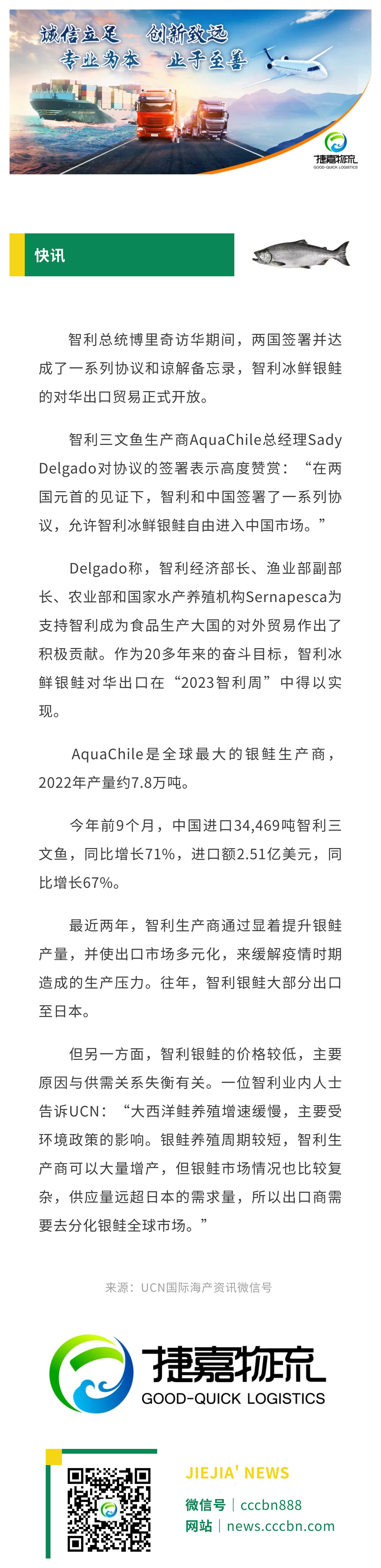 境外涉农 | 智利冰鲜银鲑对华出口贸易正式开放
