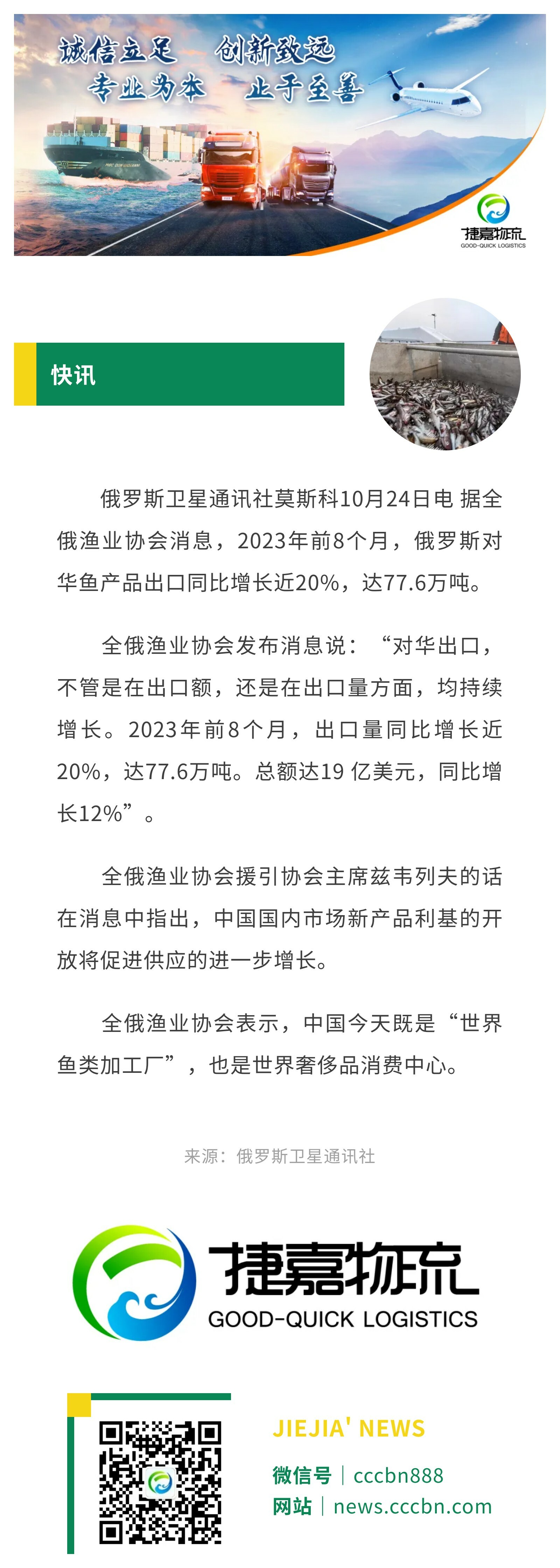 境外涉农 | 2023年1-8月俄罗斯对华鱼产品出口同比增长近20%