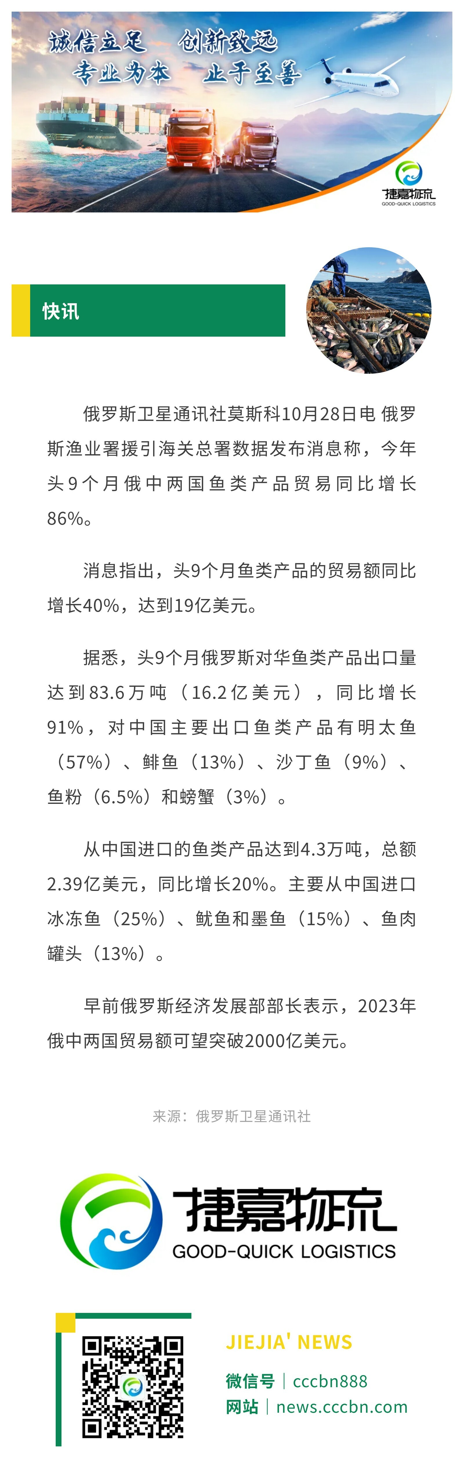 境外涉农 | 今年头9个月俄中两国鱼类产品贸易增长86%