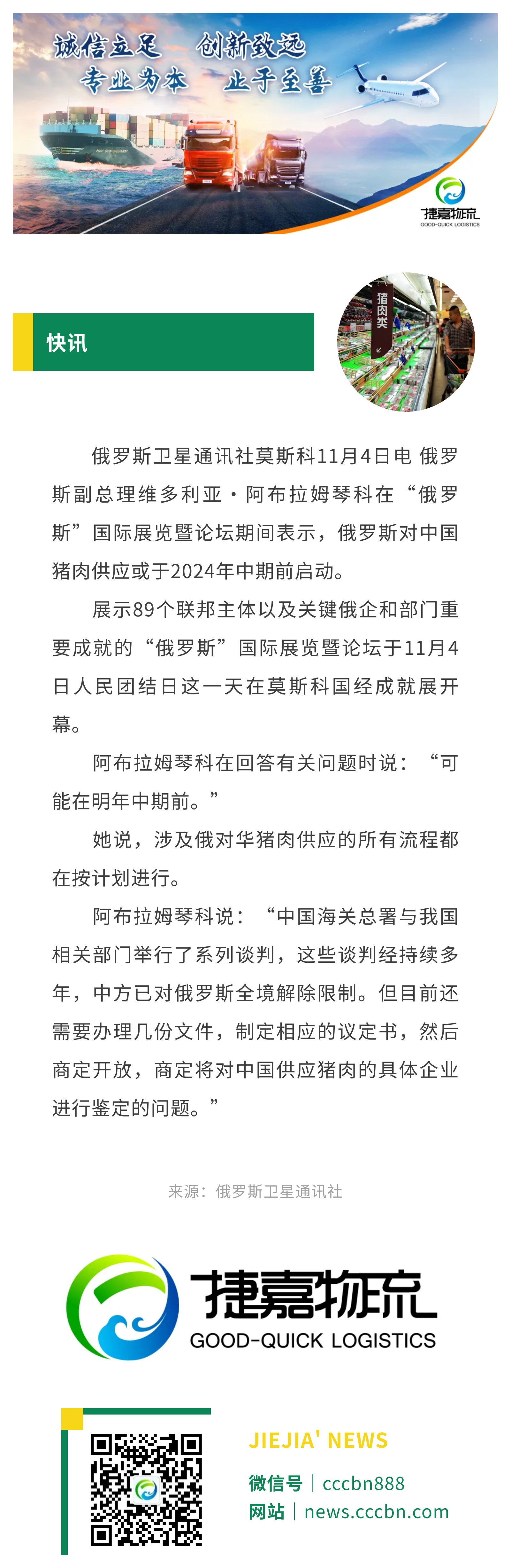 境外涉农 | 俄副总理预计俄对华猪肉供应或于2024年中期前启动
