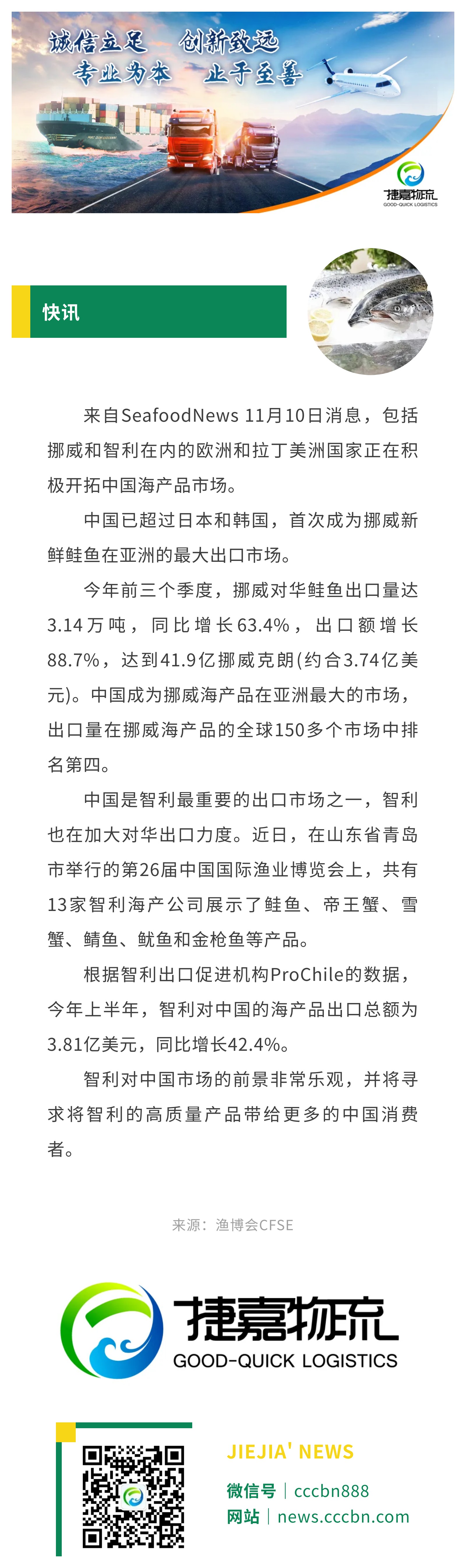 境外涉农 | 挪威和智利看好海产品对华出口前景