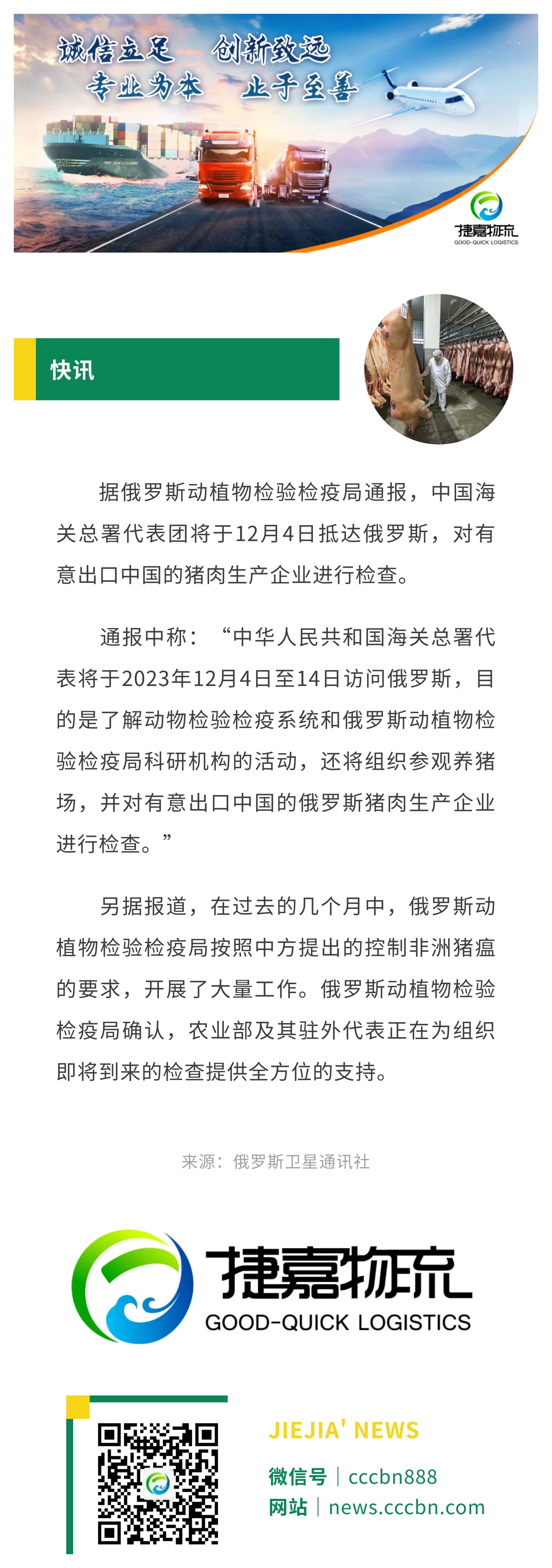 境外涉农 | 中国海关代表团将于12月4日抵俄检查猪肉生产