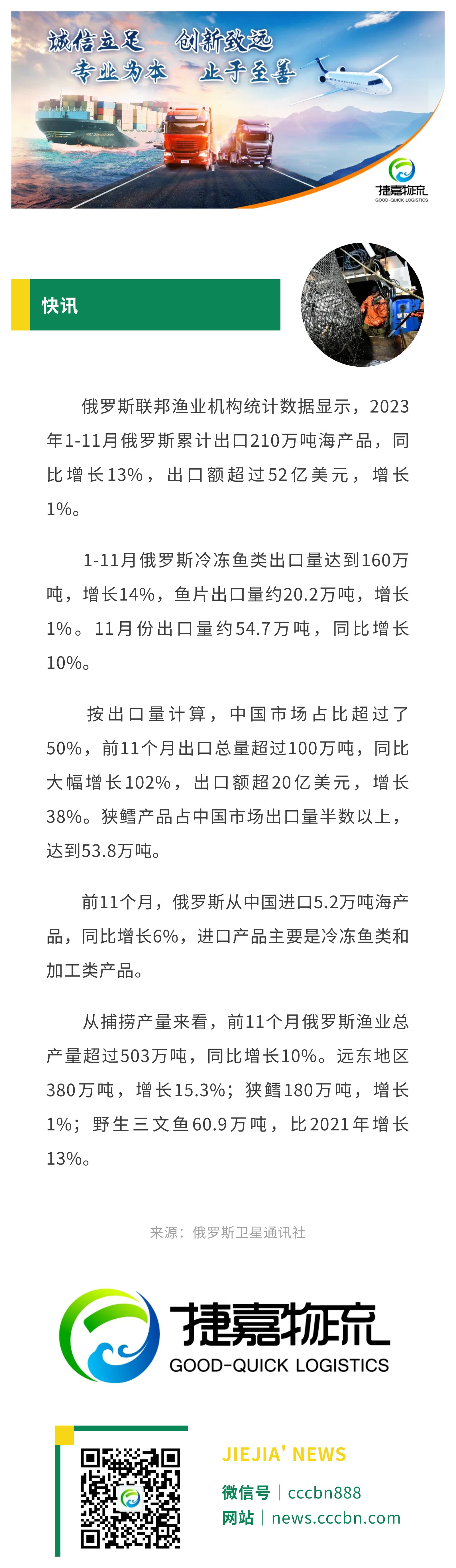 境外涉农 | 俄海产品出口量已超200万吨,100万吨销往中国,狭鳕超50万吨