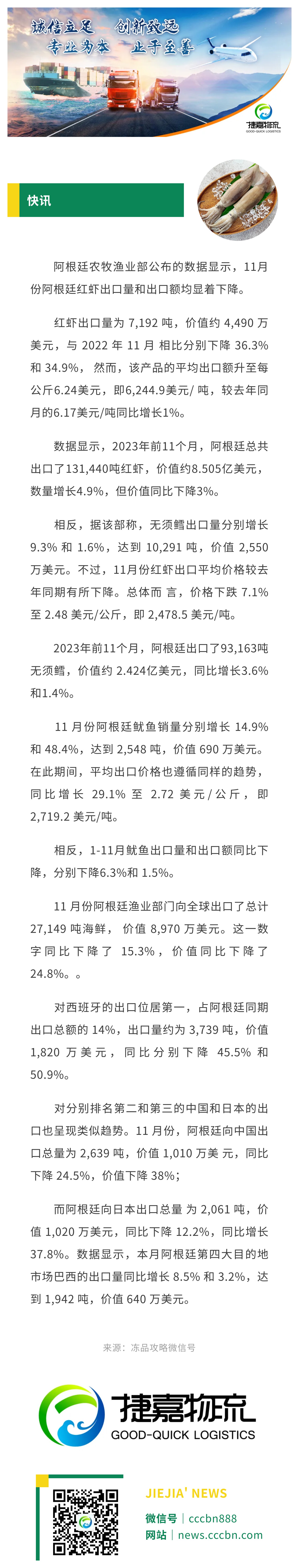 境外涉农 | 阿根廷海产对中国出口货值同比下降37.8%