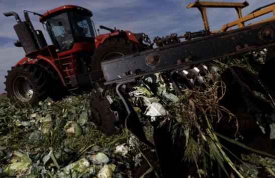 佛罗里达州罗克哈顿农场的经营者保罗·艾伦不得不用圆盘耙机“粉碎”他还未收获的数百英亩的卷心菜。这种机械原本应当是用以农田耕前灭茬或耕后碎土,现在却被用来直接“粉碎”应当收获的作物。