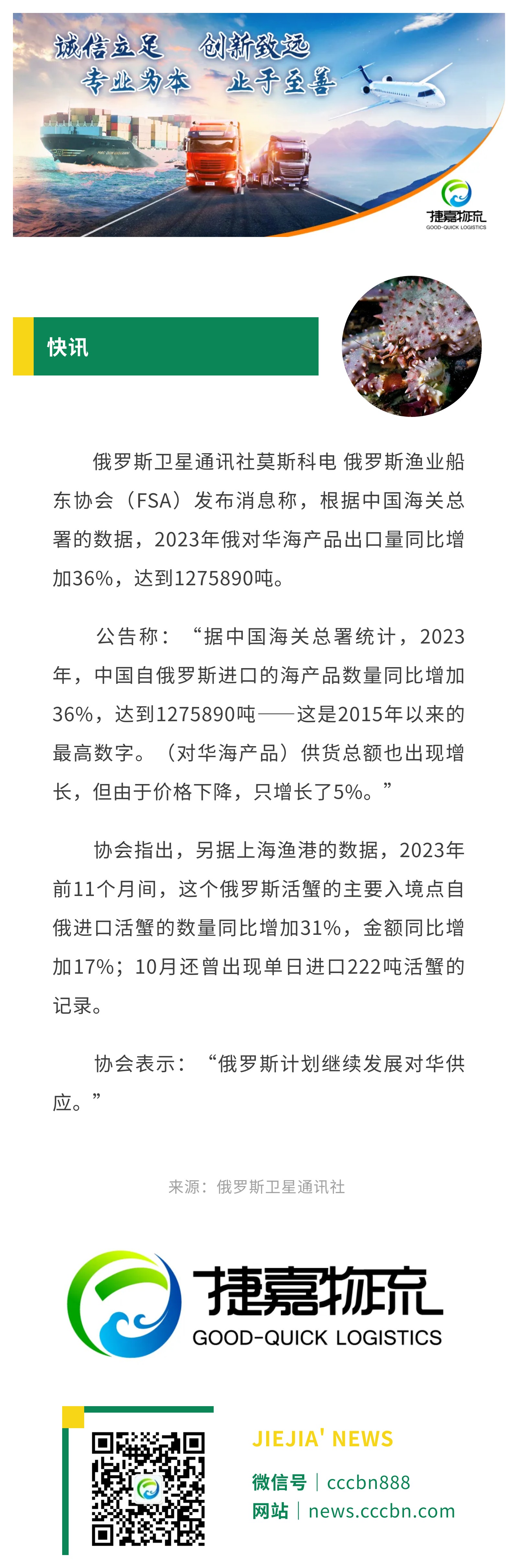 境外涉农 | 俄渔业船东协会:2023年俄对华海产品出口量同比增加36%