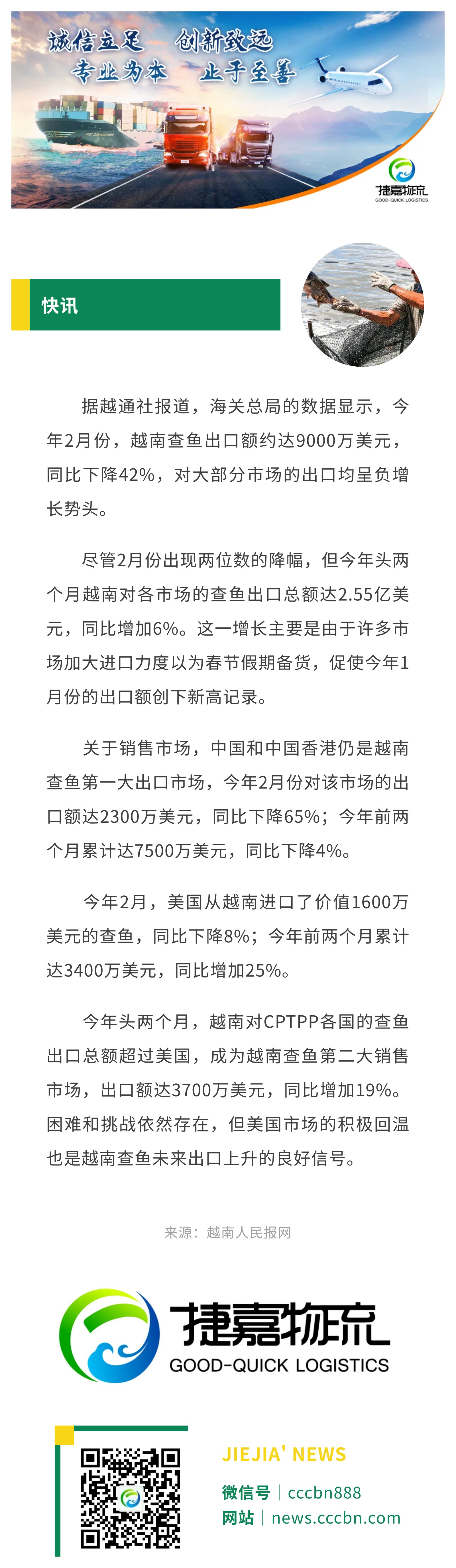 境外涉农 | 今年前两个月中国是越南查鱼最大出口市场