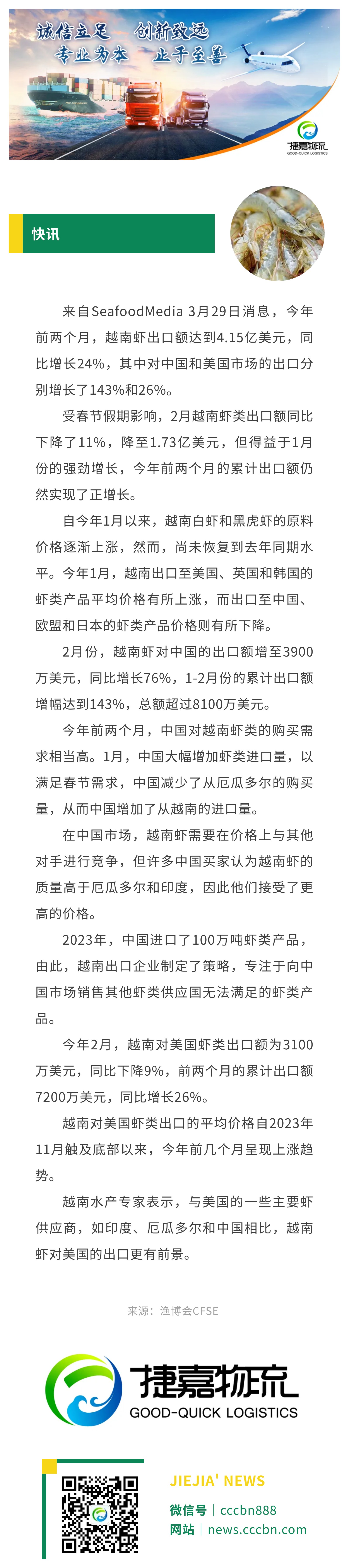 境外涉农 | 今年前2个月越南虾对中国的出口额增长143%