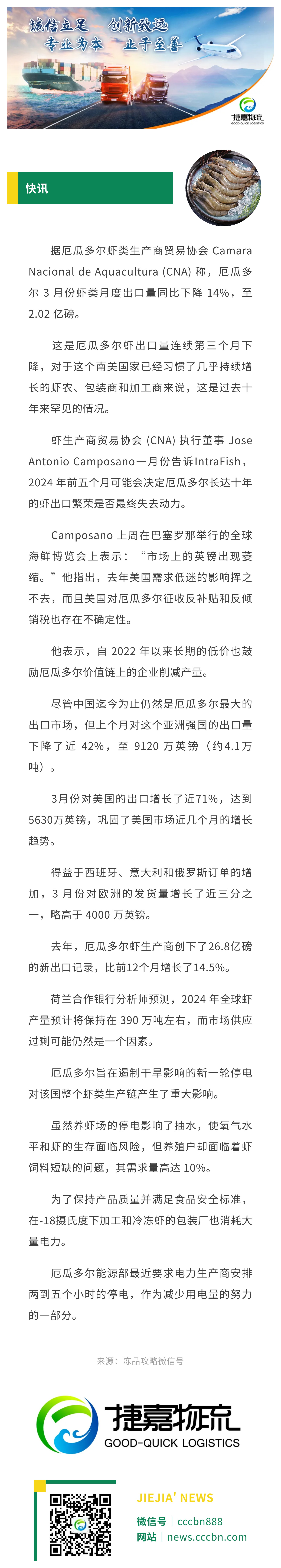 境外涉农 | 市场低迷厄瓜多尔虾出口再次下滑,对中国出口下降42%