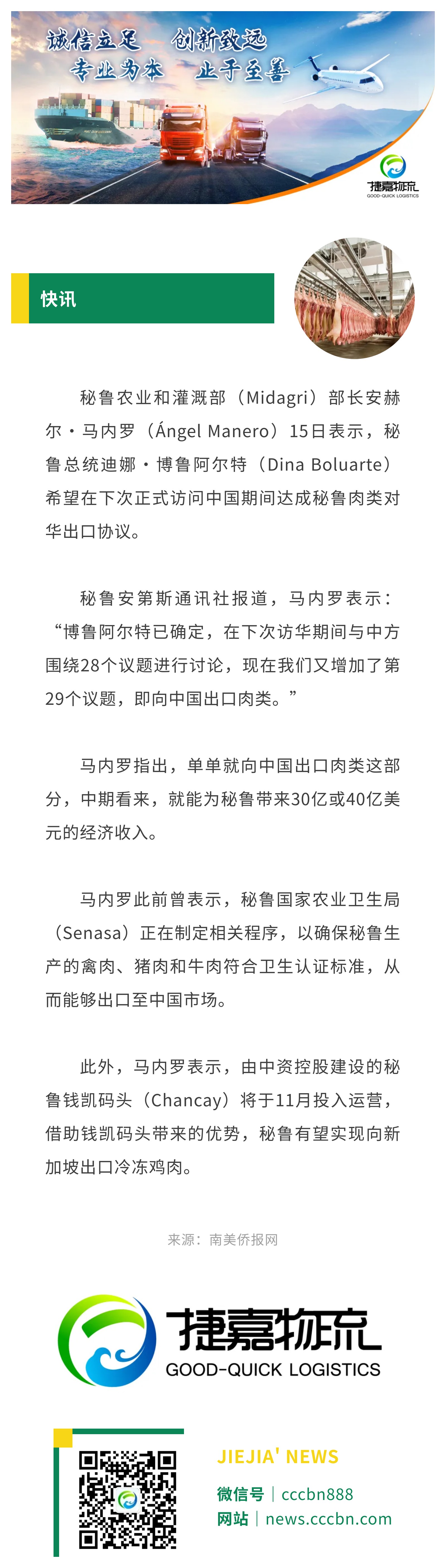 境外涉农 | 秘鲁农业部长:寻求实现肉类对华出口