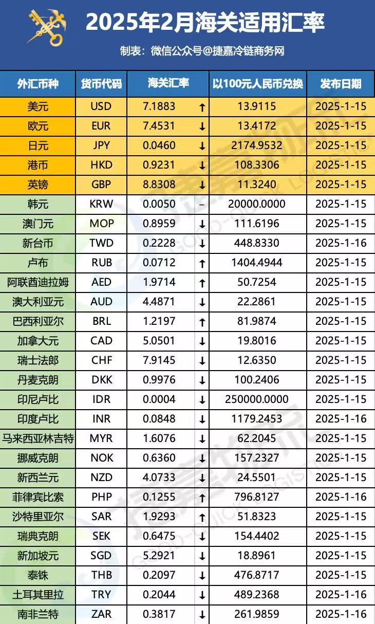 2025年2月海关汇率(对比)
