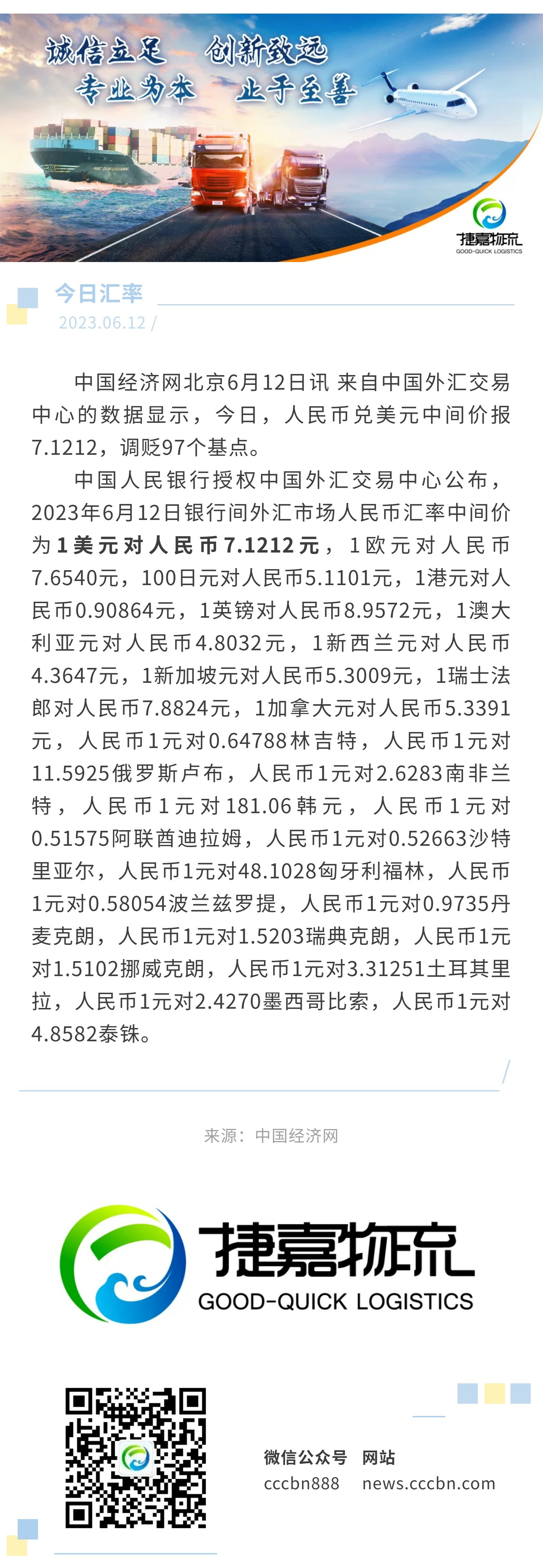 6月12日人民币兑美元中间价报7.1212,调贬97个基点