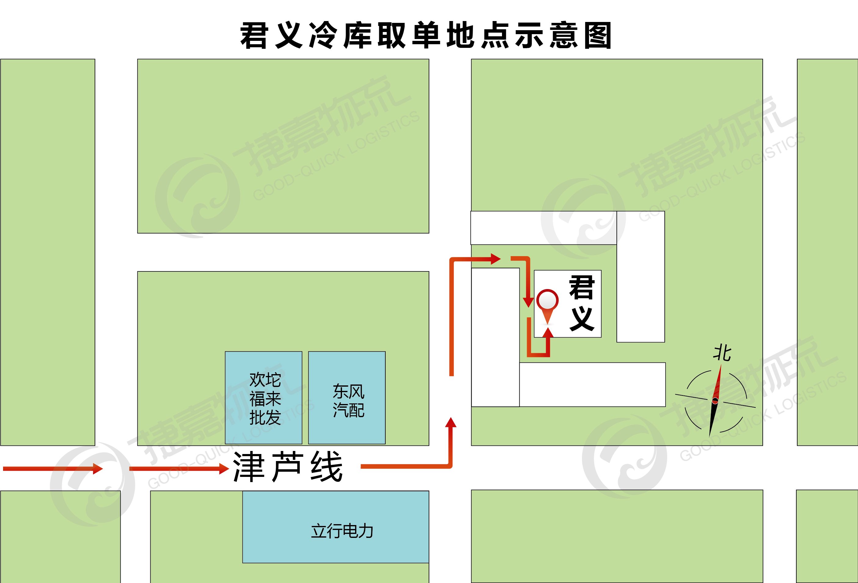 君义冷链地址及取单地点示意图