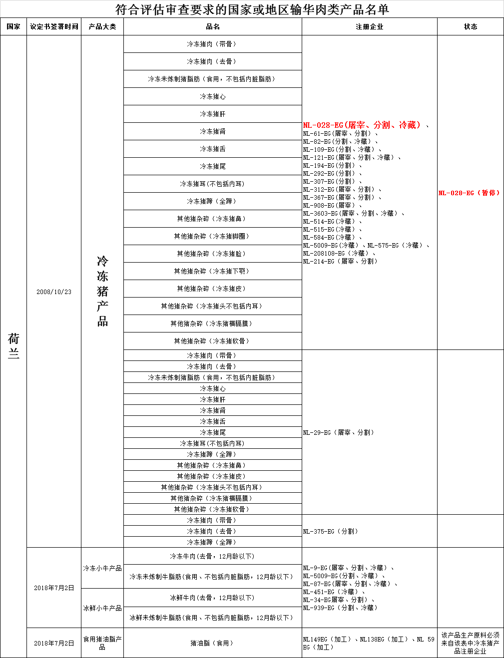 海关总署 |【准入更新】暂停受理荷兰1家肉企产品进口申报(2021年2月3日更新)