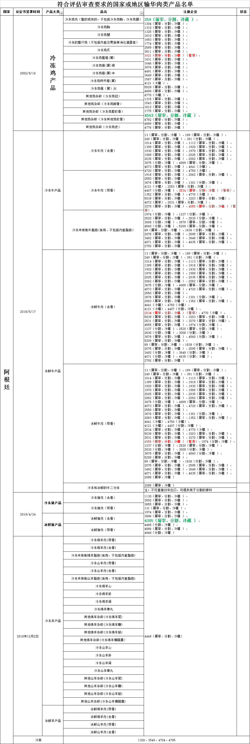 海关总署 |【准入更新】恢复阿根廷3家肉企产品有条件输华(2021年3月3日更新)