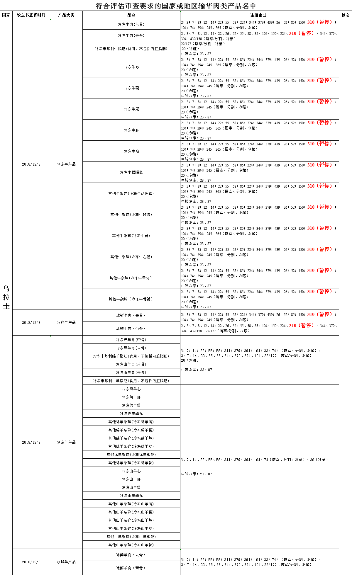 海关总署 |【准入更新】新增美国19家肉企产品输华;暂停乌拉圭1家肉企产品输华