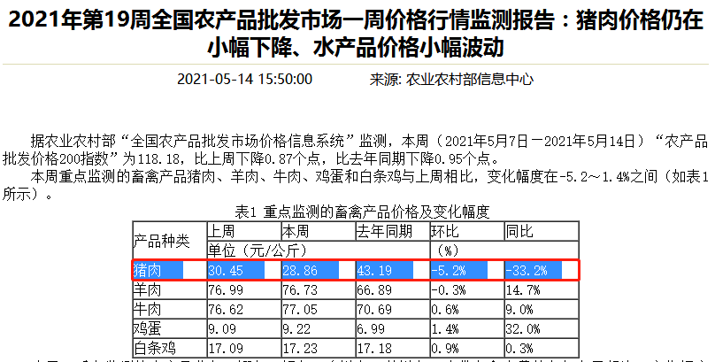 其实猪肉价格下跌是全国的趋势,农业农村部监测数据显示,早在今年3月份,全国24个省份猪肉价格都出现了下跌。中国社会科学院的研究员表示,2021年中国的猪肉总产量预计达到约5000万吨,进口肉的总量也会进一步增加。