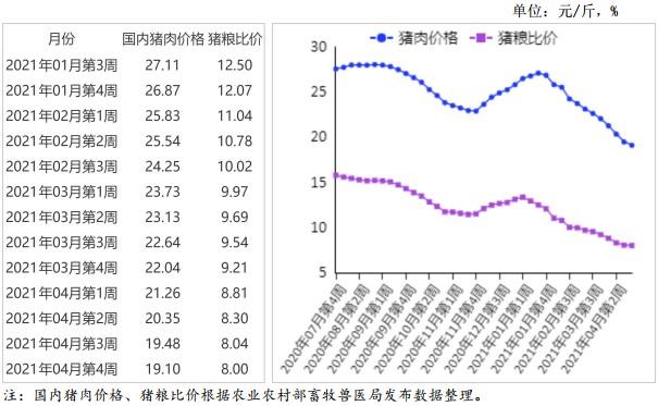 据了解,近几个月国内猪价下降较快,已经回落到本轮生猪产能恢复以来的最低点。尤其是进入5月,部分地区的生猪均价跌破每斤10元大关,创下新低。分析原因,主要是生猪出栏明显增加,也有养殖户恐慌性出栏形成了“踩踏效应”,整个市场压栏大猪较多,供应端压力较大。随着天气转热,大猪消化速度减慢,而且因为猪价下降,部分养殖户选择压栏惜售,市场大猪积压,导致生猪价格回落。