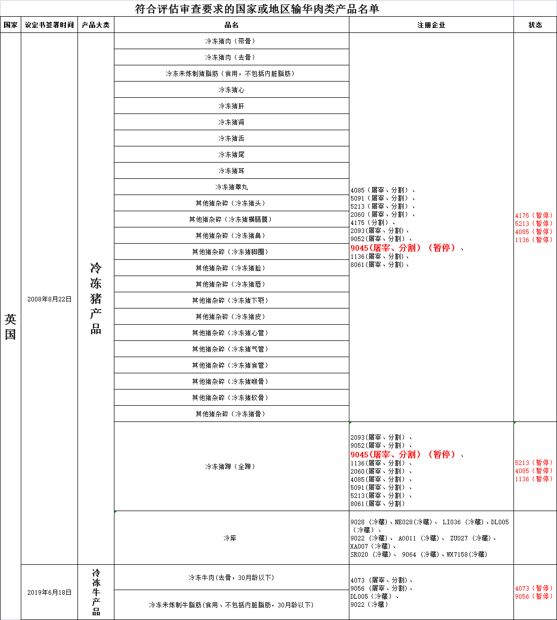 ⬆ 1.自2021年6月17日零时起暂停接受英国1家在华注册企业(注册编号为9045)产品进口申报1周,期满后自动恢复。
