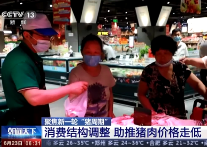 这一个时期,猪肉价格下降比较快,到六月份第二周,全国猪肉集贸市场的平均零售价格每公斤27.8元,这个跟年初的最高价相比已经下降了一半,现在已经连续20周下降。
