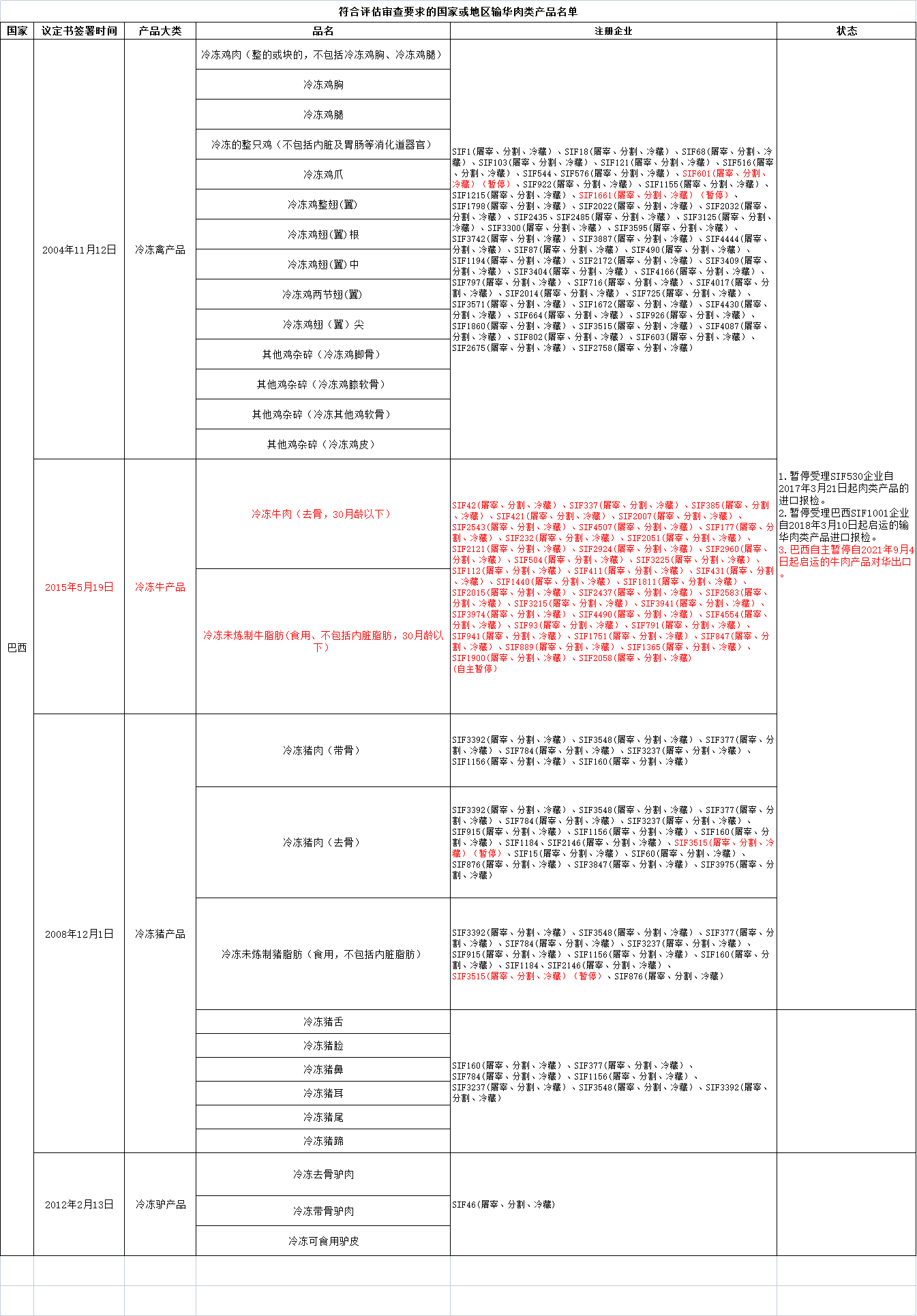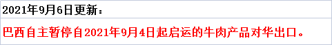 ⬆  巴西自主暂停自2021年9月4日起启运的牛肉产品对华出口。