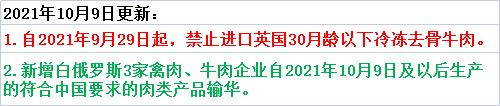 ⬆ 1.自2021年9月29日起,禁止进口英国30月龄以下冷冻去骨牛肉。